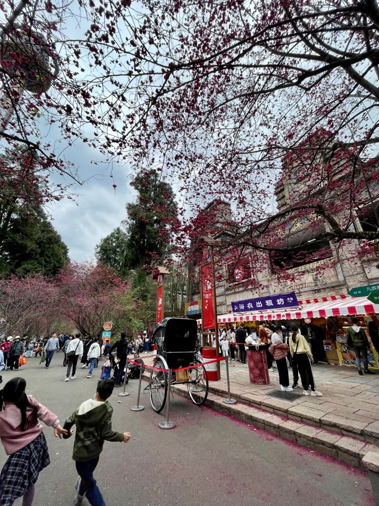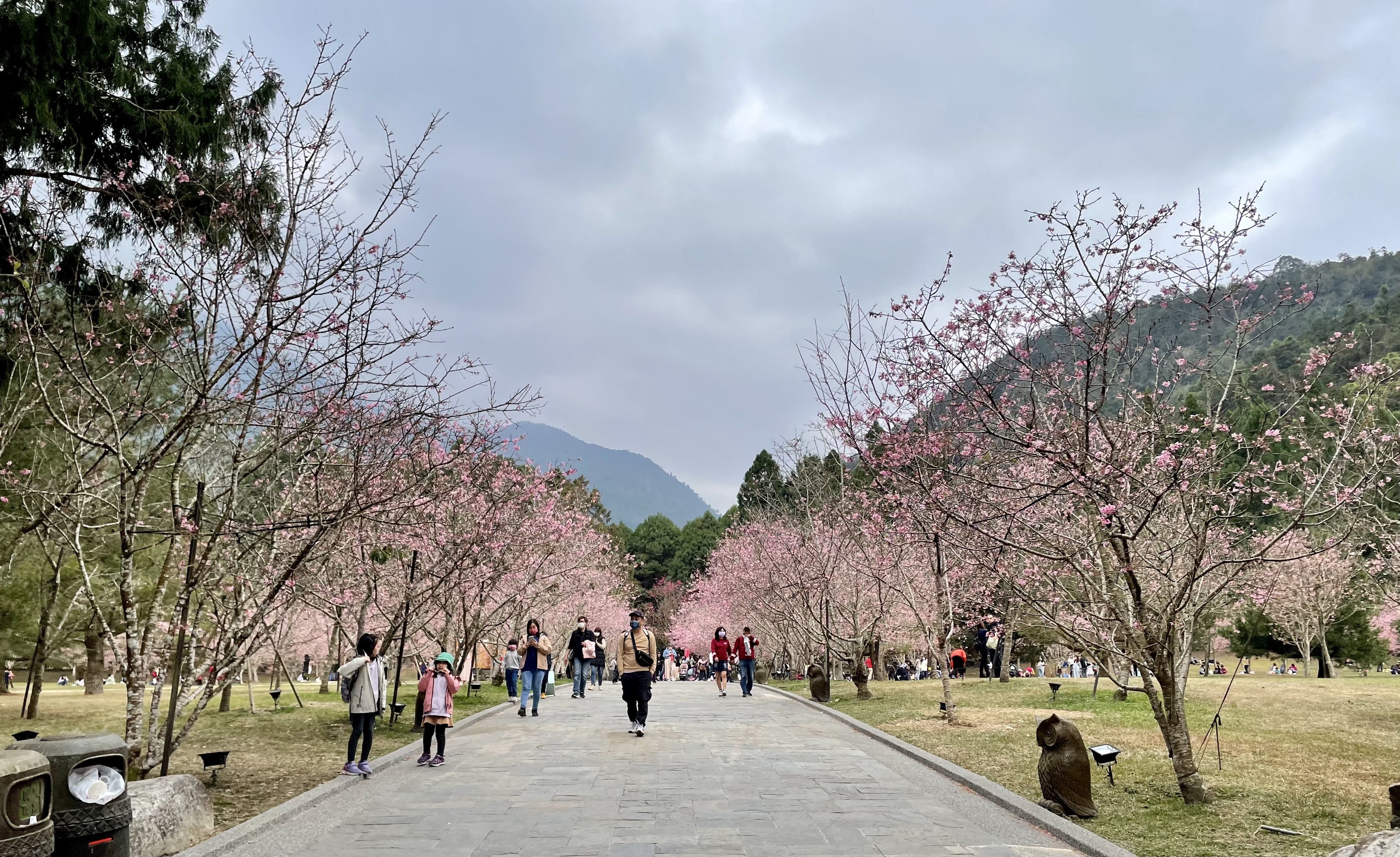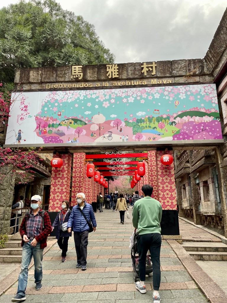 園區內有蠻多地方都有櫻花種植區的,可以參考園區給的地圖,我們主要在櫻花大道的櫻花林區下野餐,櫻花大道兩側有擺一些當地土產的攤販,九族文化村內對嬰兒推車相當友善,只要有樓梯的地方基本上旁邊都有Z字型斜坡供推車使用,真的很加分,會讓人還想帶小小孩過來。