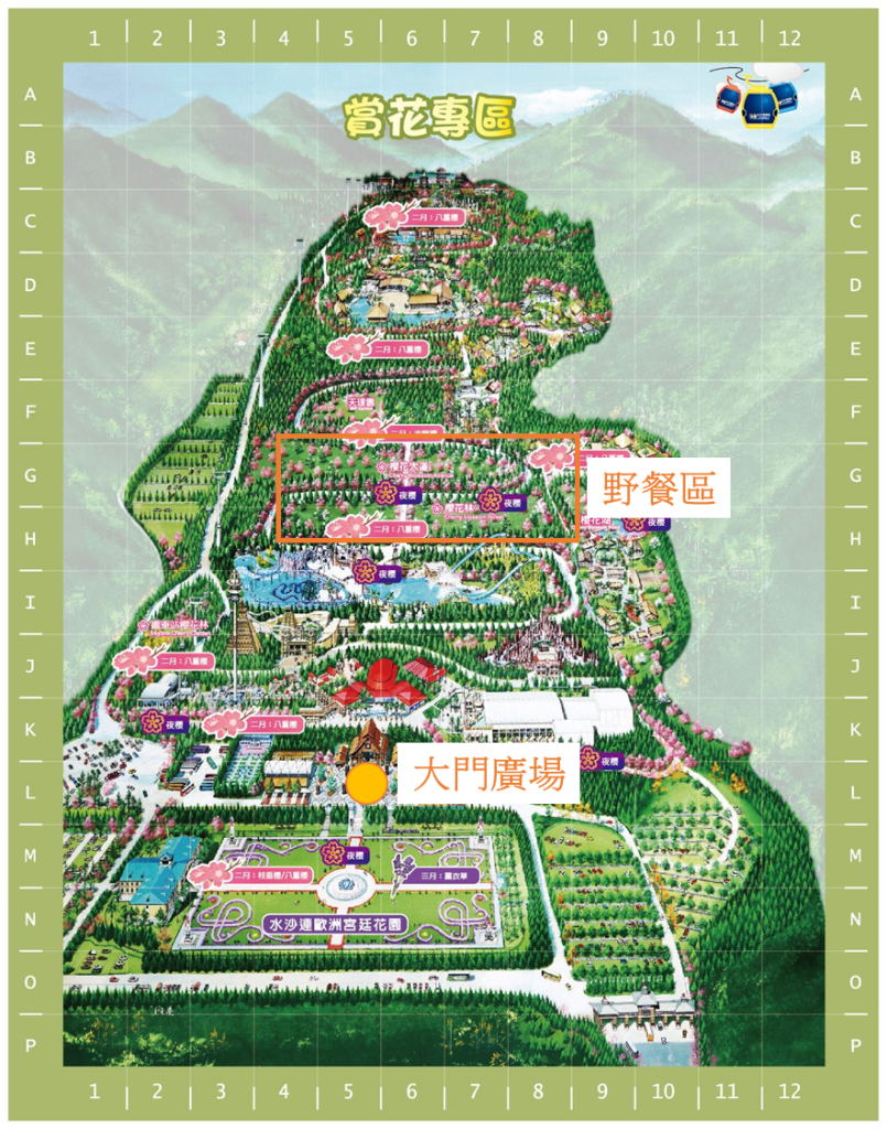 本次出遊的重頭戲,九族櫻花祭,櫻花祭因為有賞夜櫻的活動,九族會開放到19:00,我們目標是想去看櫻花加野餐,於是我們吃飽飯大約兩點多才出發入園,預計待到最後才離開,以寶寶的活動力來看,這樣的時間長度還不錯。
