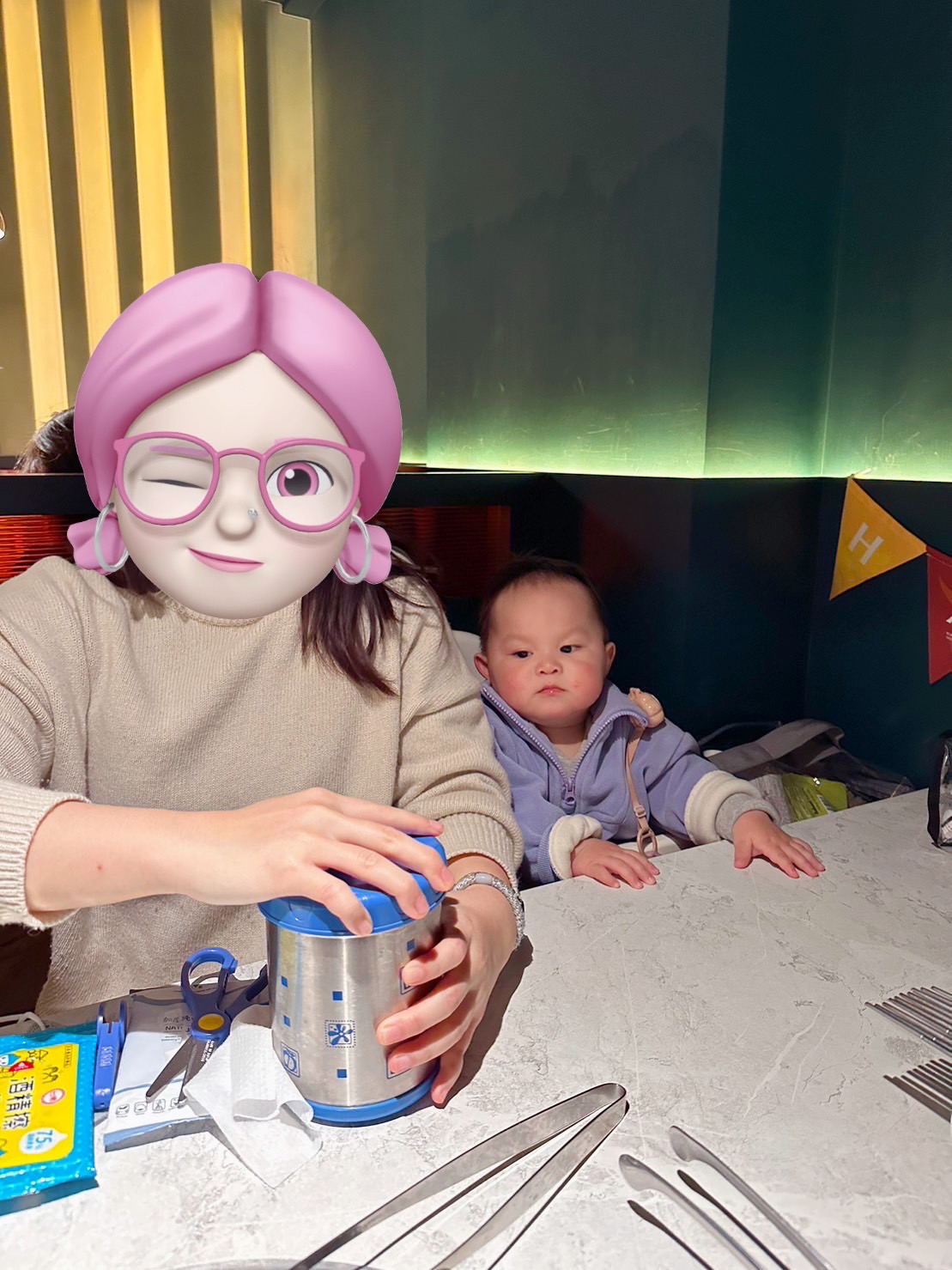 期待已久的燒肉大餐,為了這餐媽媽也是準備了許多工具,希望能讓老嬰自主進食一陣子,父母才有時間可以品嘗一下燒肉啊,不過由於現場真的太混亂了,沒拍到幾張照片殘念,同桌還有一個小一個月的表弟XD。