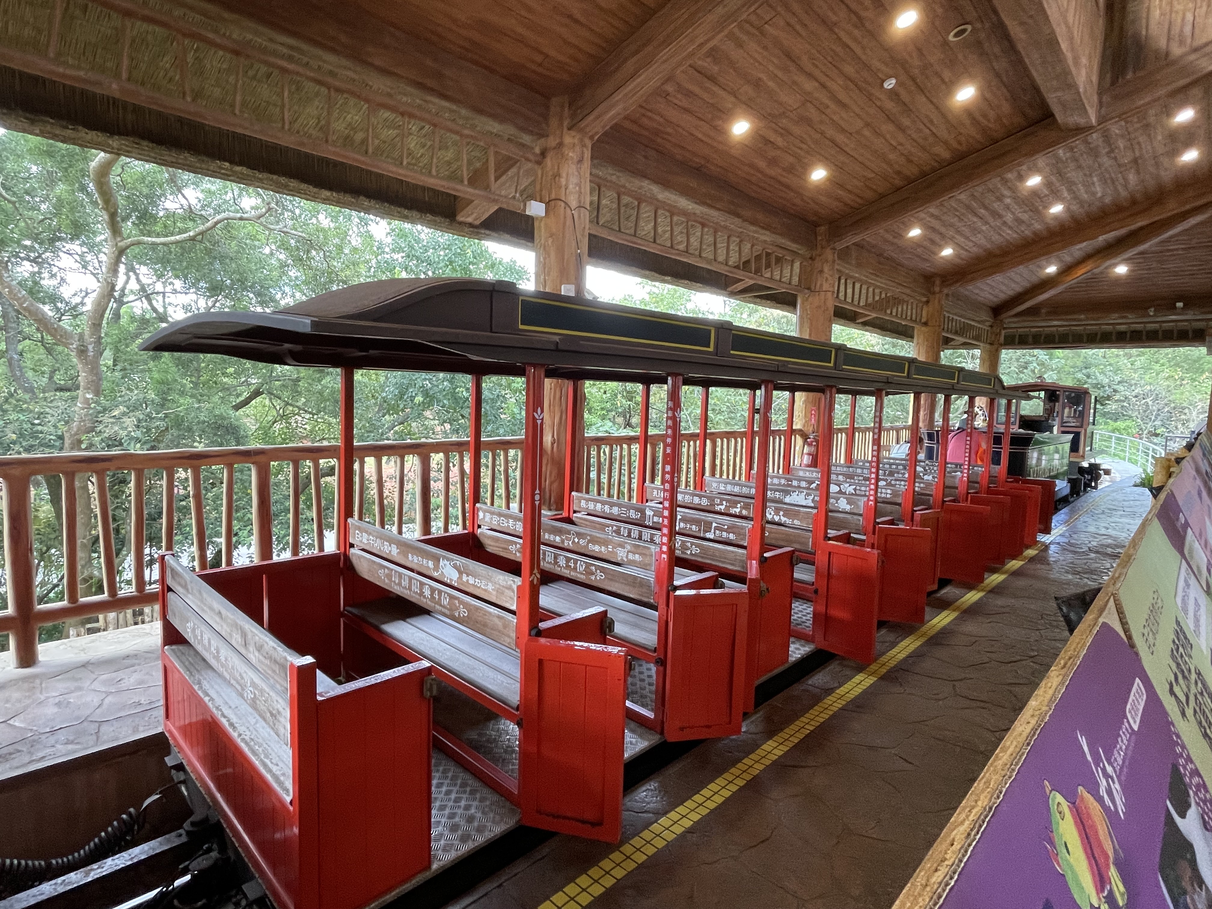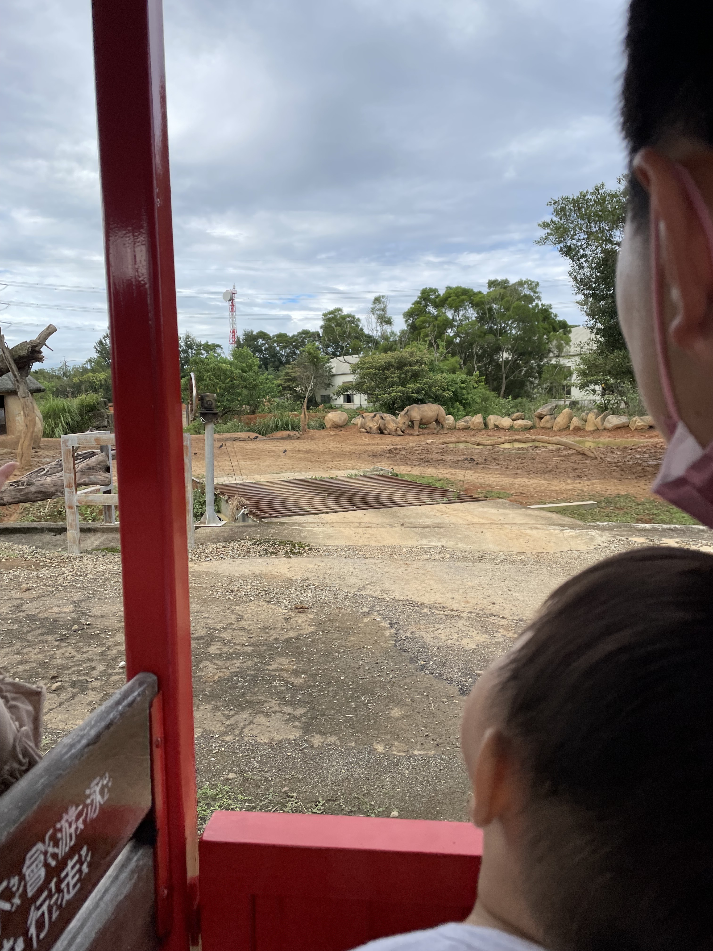 玩一玩發現也快到蒸汽火車結束的時間,我們就趕緊前往去排隊了,蒸汽火車排隊人潮看起來雖然很多,但火車一趟可以坐很多人,有兩台火車在輪班,我們大概排十幾分鐘就坐到了,繞行一圈約十五至二十分鐘。我和老公都是第一次搭蒸汽火車,覺得非常驚豔,六福村動物園的動物沒有特別使用圍籬圍起來,只有簡單用一些地形區分生活區,裡面的動物都和平共處,甚至看到孔雀等禽類到處遊走,每個種類的數量也是多得驚人,犀牛、髦牛,河馬等等,都是成群地而且很大隻,就像蒞臨在非洲草原的感覺! 很推薦大家來體驗,小小孩坐在火車上兜風也是非常的愜意開心,安排在遊玩的後半段剛好可以坐著休息一下,挺不錯的~