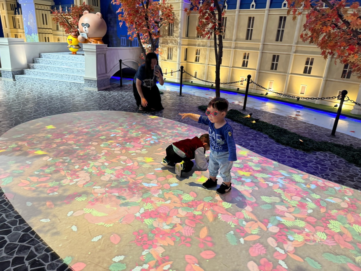 這個景點是小時候的我來時沒有的(超久以前),一直有聽到說這個很厲害,進去之後真的驚為天人,超多可愛的佈景,超殺底片的地方,也有可以互動的投影,弟咕就在互動投影地板玩了超久,跑來跑去消耗體力,也有一個兒童可以玩的球池,但有點激烈就沒讓弟咕進去了,總之很推薦大家來玩!