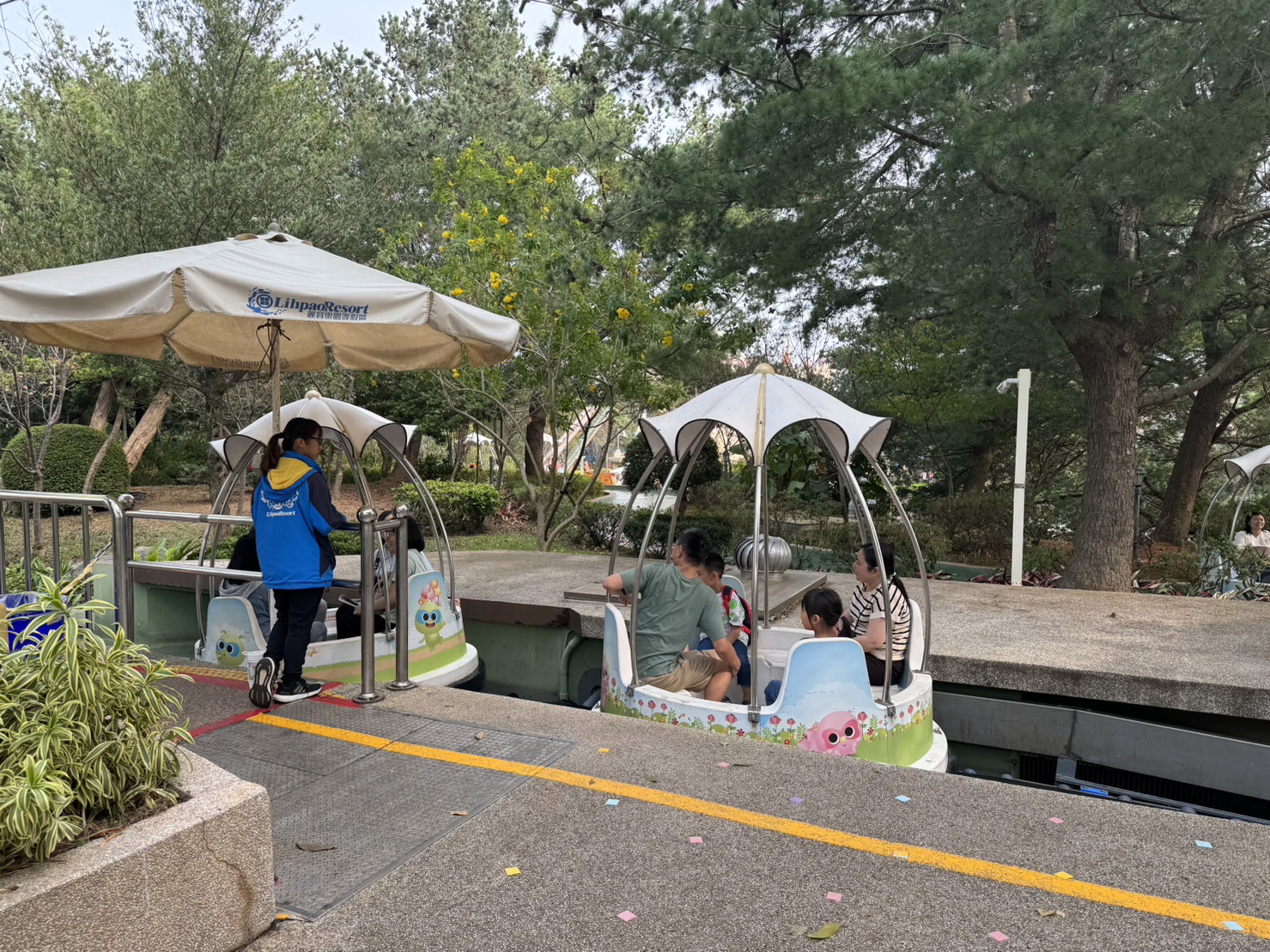 花園小舟是非常緩慢的設施,小舟在水裡慢慢前進,看著水波挺療愈的,不過椅子上沒有安全帶,小小孩可能還是要抱著比較安全~ 也是一個老少咸宜的設施。